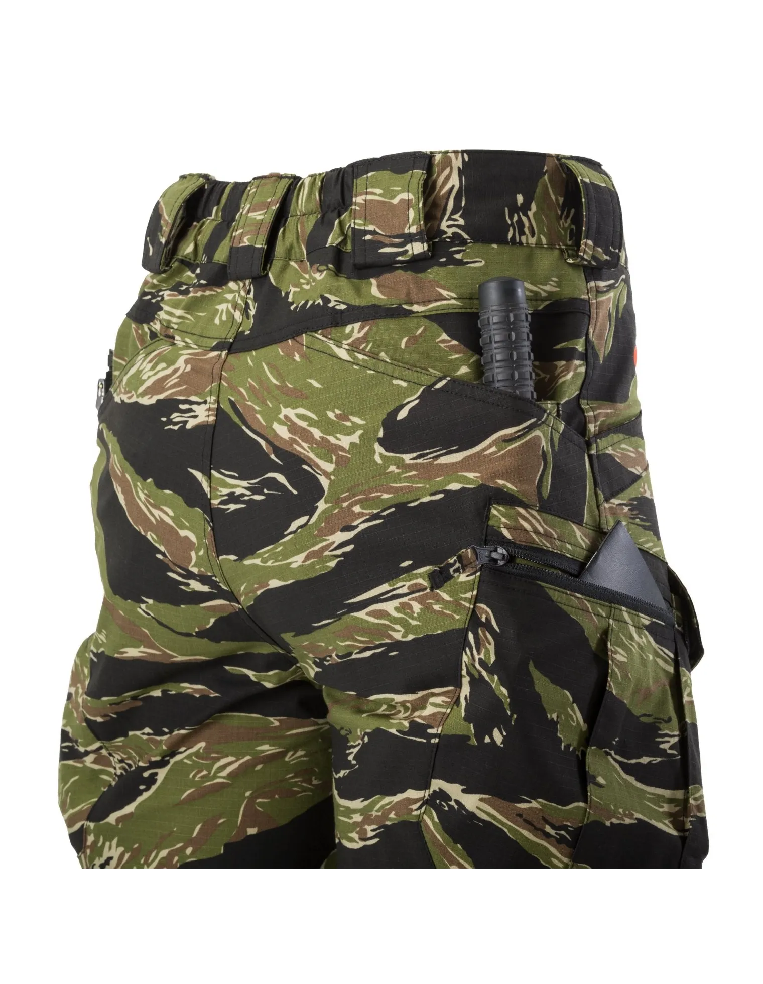 El diseño de los cortes y los bolsillos les permite permanecer lo suficientemente civiles como para no revelar la identidad del usuario, al mismo tiempo que les permite usar un conjunto completo de equipo táctico. El cinturón elástico cerrado con velcro permite una medida de ajuste dentro de la talla. Las presillas de cinturón grandes permiten cinturones anchos como EDC, UTL® o Cobra®.