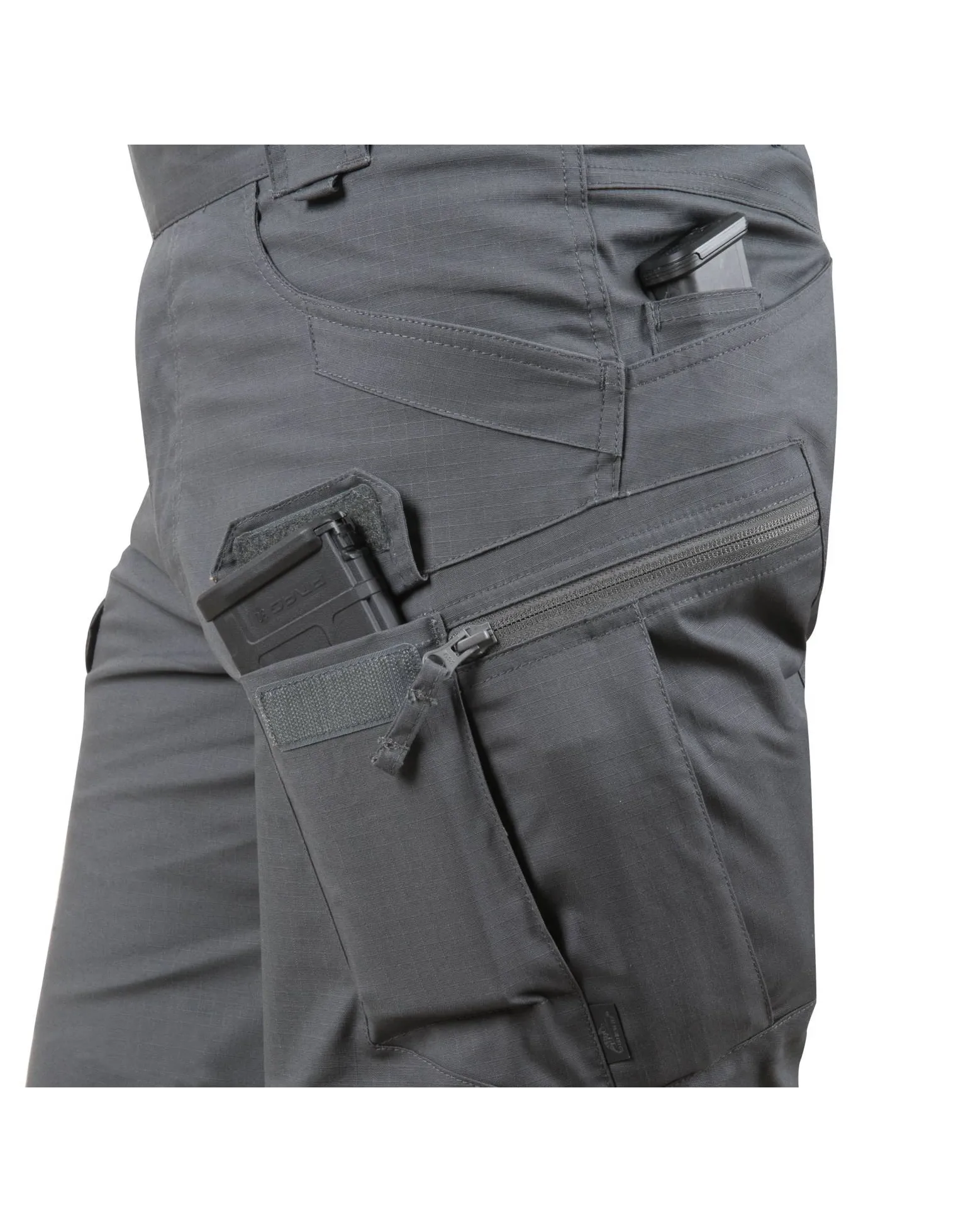 - Dos bolsillos de carga en los muslos con reversa YKK®