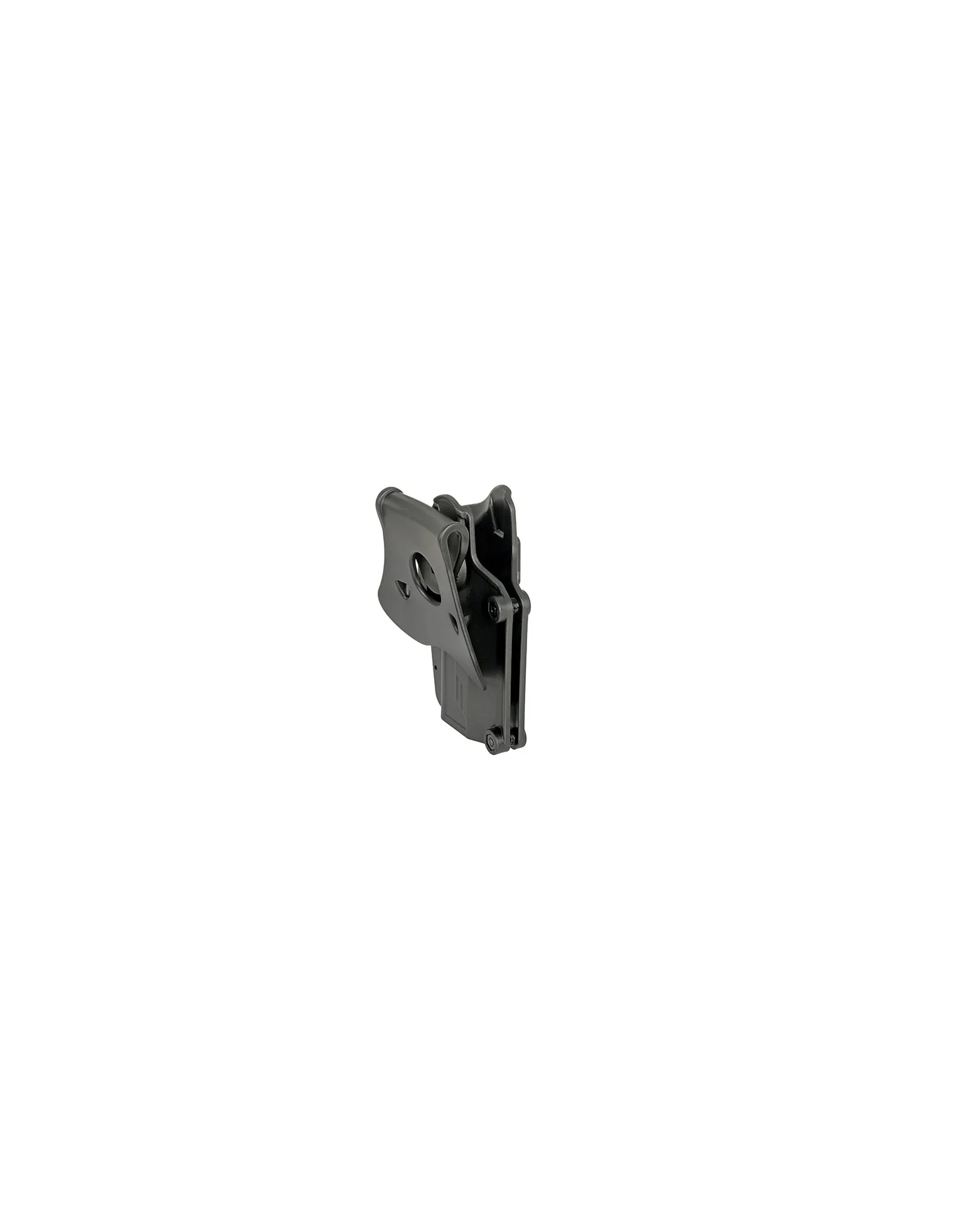 La funda Amomax es compatible con 4 plataformas de transporte diferentes: paleta (incluida), clip para cinturón, MOLLE y plataforma para piernas abatibles. La paleta y el clip para el cinturón le permiten usar la funda en el cinturón durante el entrenamiento de tiro o la competencia, mientras que el accesorio MOLLE y la plataforma de pierna caída durante los eventos de airsoft.