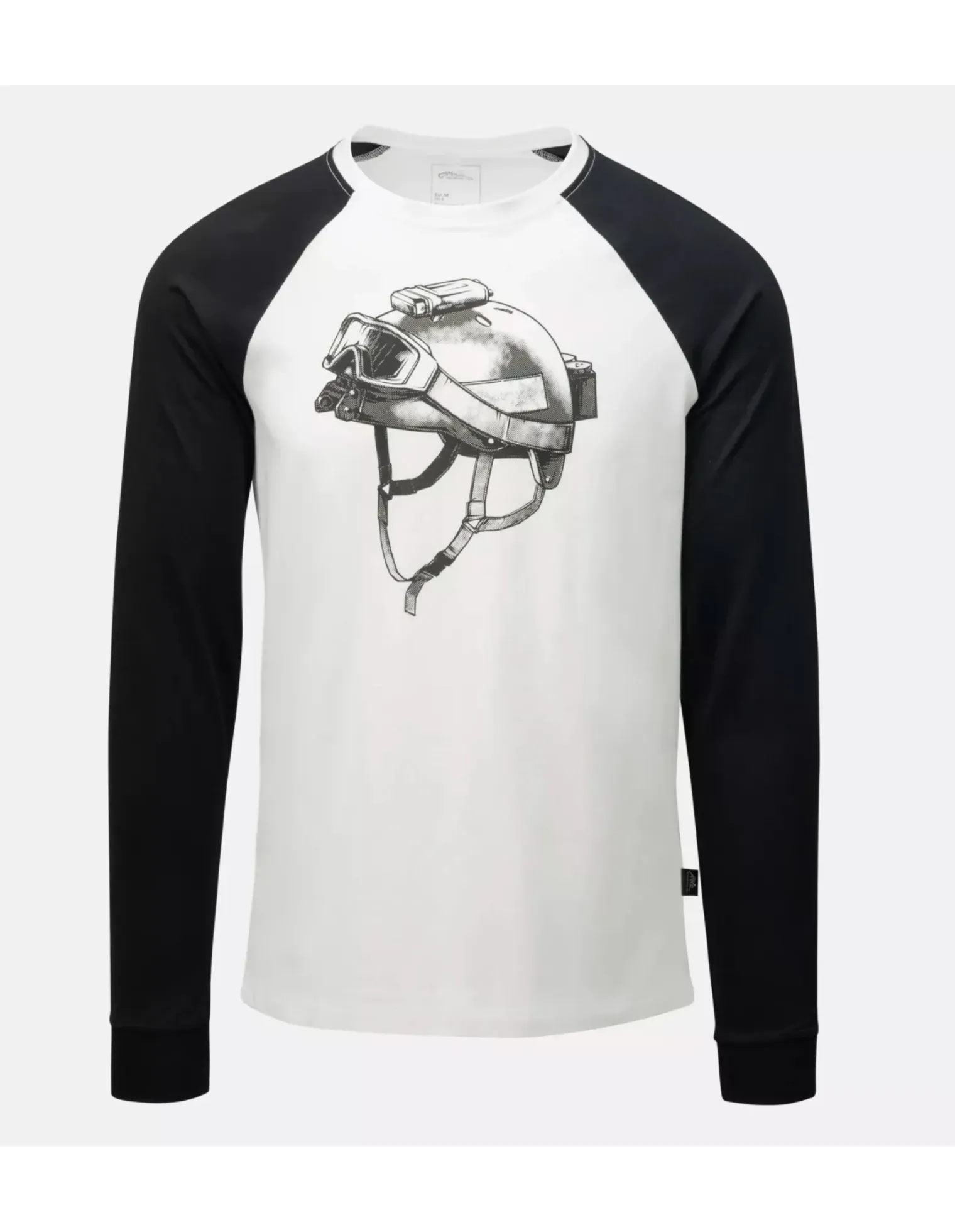 Una clásica manga larga raglán de algodón con un estampado táctico. Un casco Pro-Tec negro, gafas, operadores de luz estroboscópica SDU-5/E de unidades como Delta Force y los Navy SEALs. Forma minimalista, máxima funcionalidad. Esta manga larga es una excelente opción para aquellos a los que les gusta mostrar sus raíces, incluso fuera de servicio.