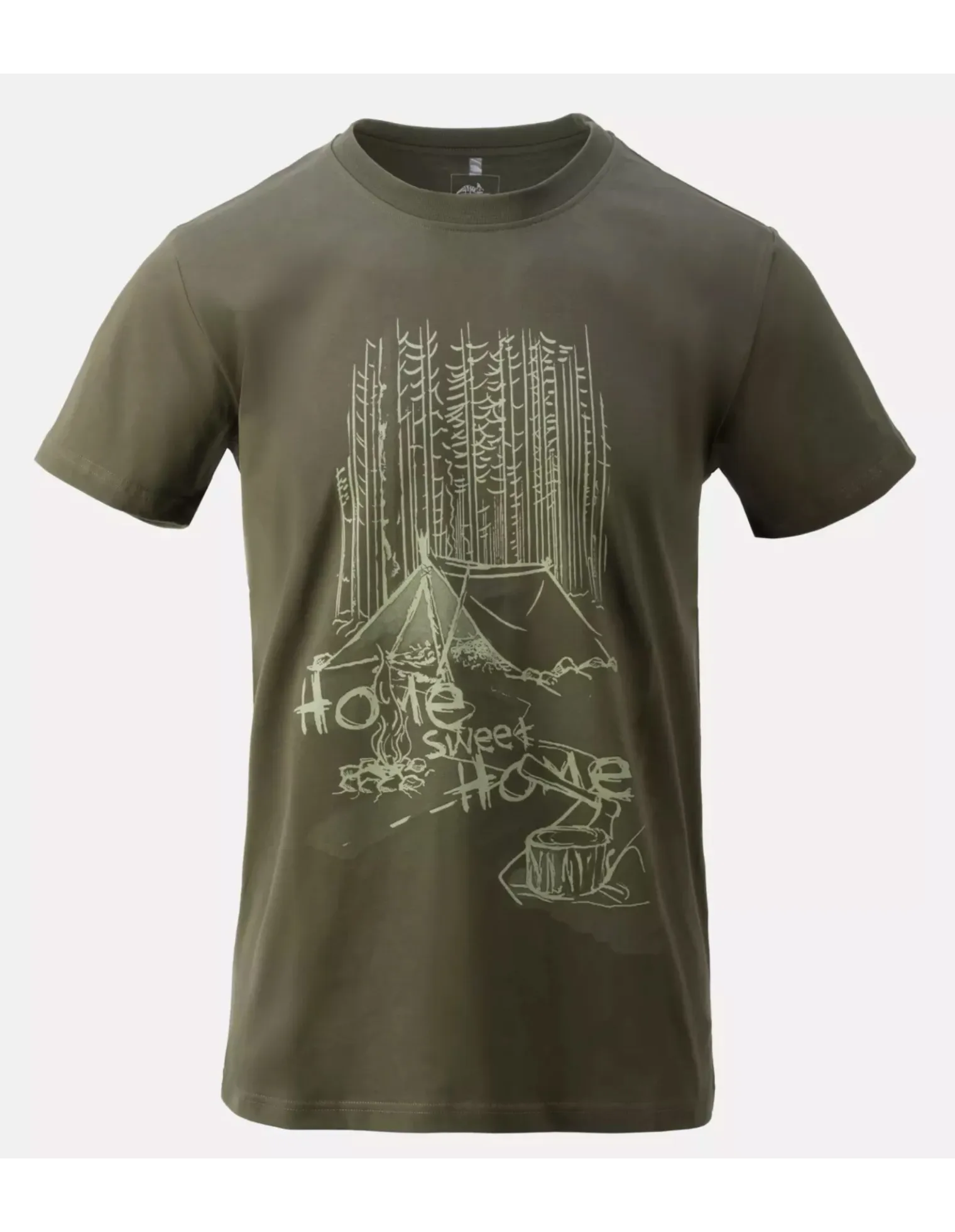 La camiseta con estampado Home Sweet Home es un verdadero placer para aquellos que aman relajarse al aire libre. El llamativo estampado cuenta con una tienda de campaña, una fogata y un pedazo del bosque, y también es altamente duradero, manteniendo su apariencia incluso después de muchos lavados. Esta camiseta gráfica está hecha de algodón transpirable y suave al tacto con un peso de 165 g/m. Cuenta con un corte clásico e icónico con mangas cortas, lo que lo hace suelto y cómodo y garantiza la libertad de movimiento.