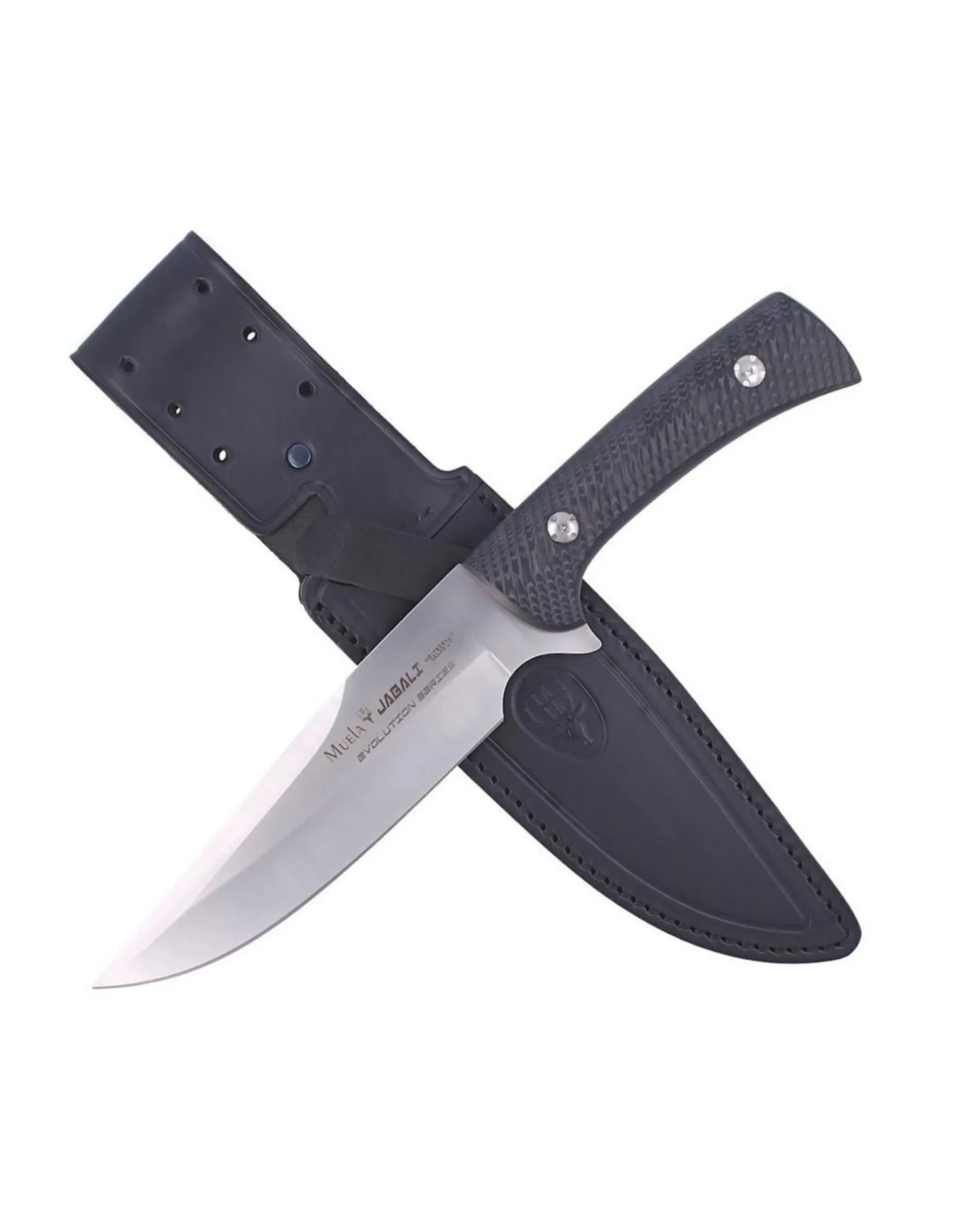 La Serie Evolution de Muela combina valores tradicionales con enfoques modernos. El Jabali-17M es un cuchillo de caza con una hoja de alta resistencia fabricada en X50CrMoV15, que presenta un ricasso pronunciado. El material del mango utilizado son cachas fresadas por CNC hechas de Micarta negra, lo que garantiza que el cuchillo fijo sea cómodo de sostener en la mano.