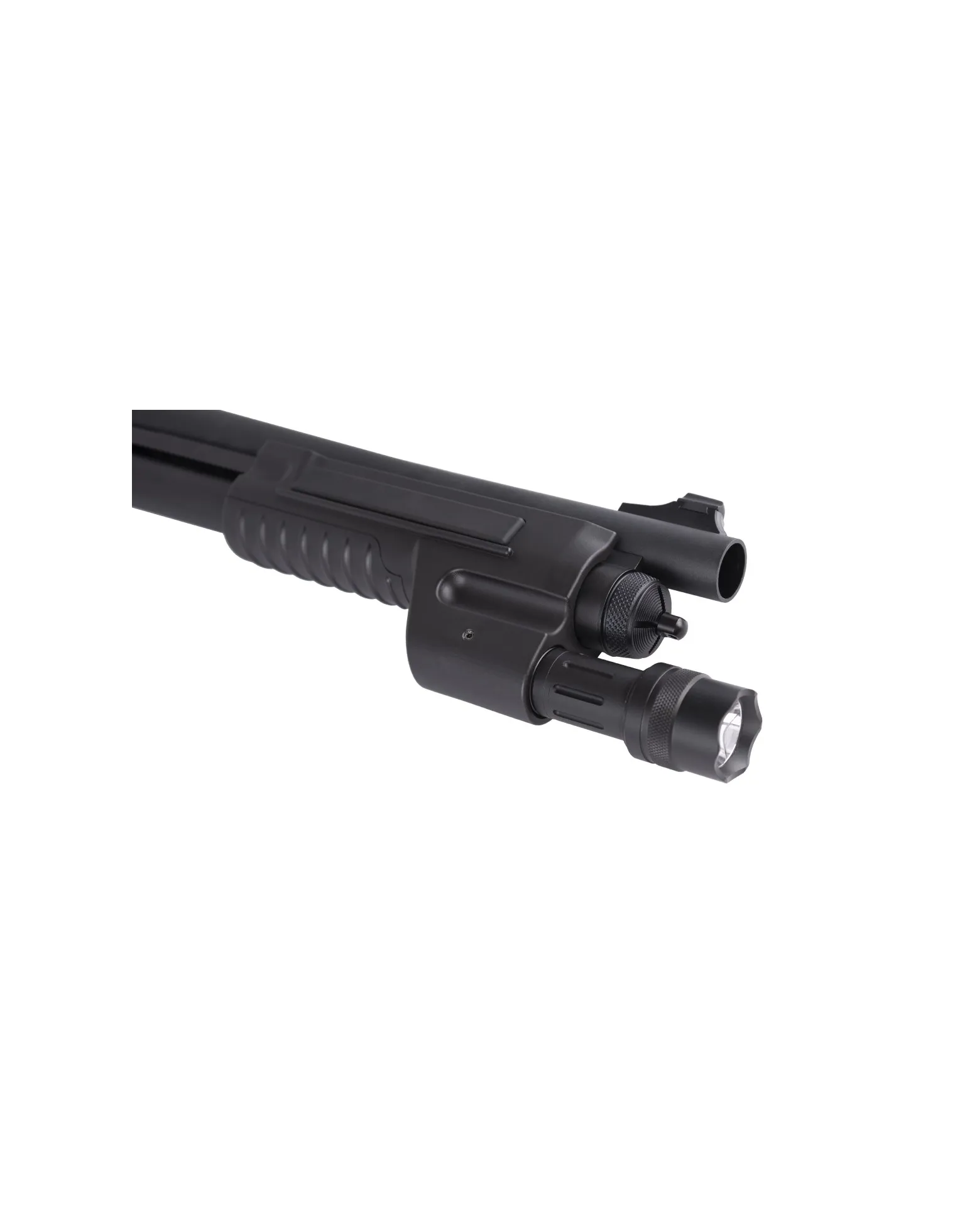 - Corredera con pulsador y con linterna (Opción de luz continua y estroboscópica). La linterna requiere batería tipo 18650 3.7V