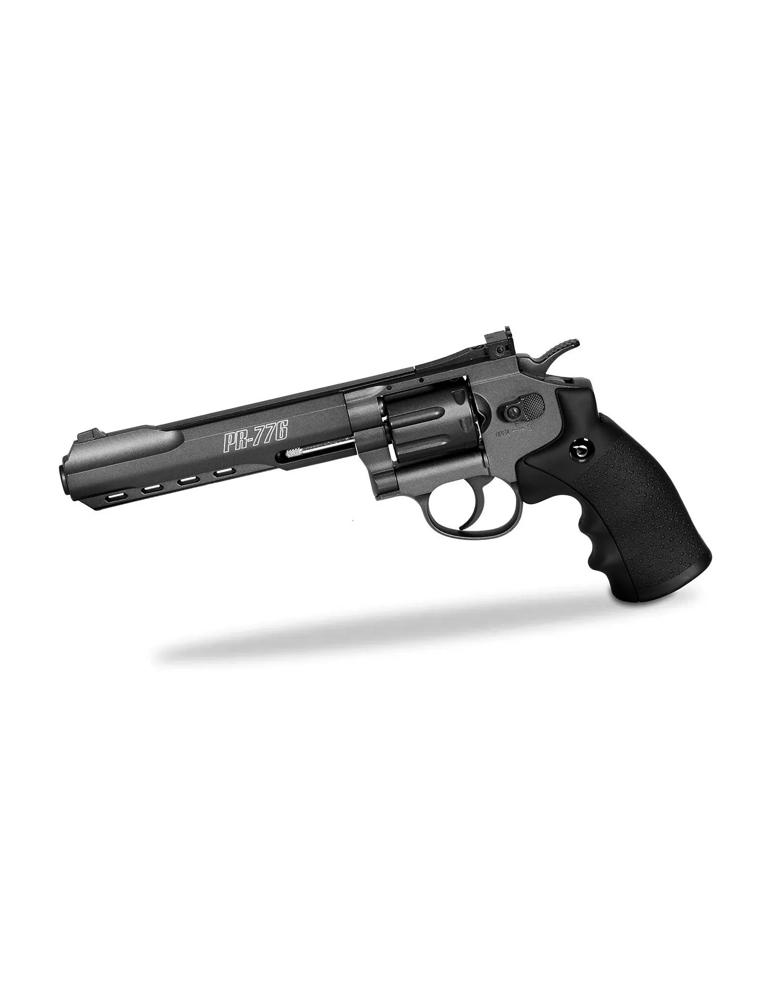 Con una velocidad de disparo de 110 m/s, es ideal para entrenamiento y prácticas de tiro deportivo. La cacha de silicona negra proporciona un agarre cómodo y seguro, haciendo que el revólver sea fácil de controlar. Este modelo combina funcionalidad y diseño en un paquete robusto y eficiente. Además, te recomendamos que consultes nuestros packs, diseñados para ofrecerte todo lo necesario y recomendado para esta pistola con un importante ahorro.