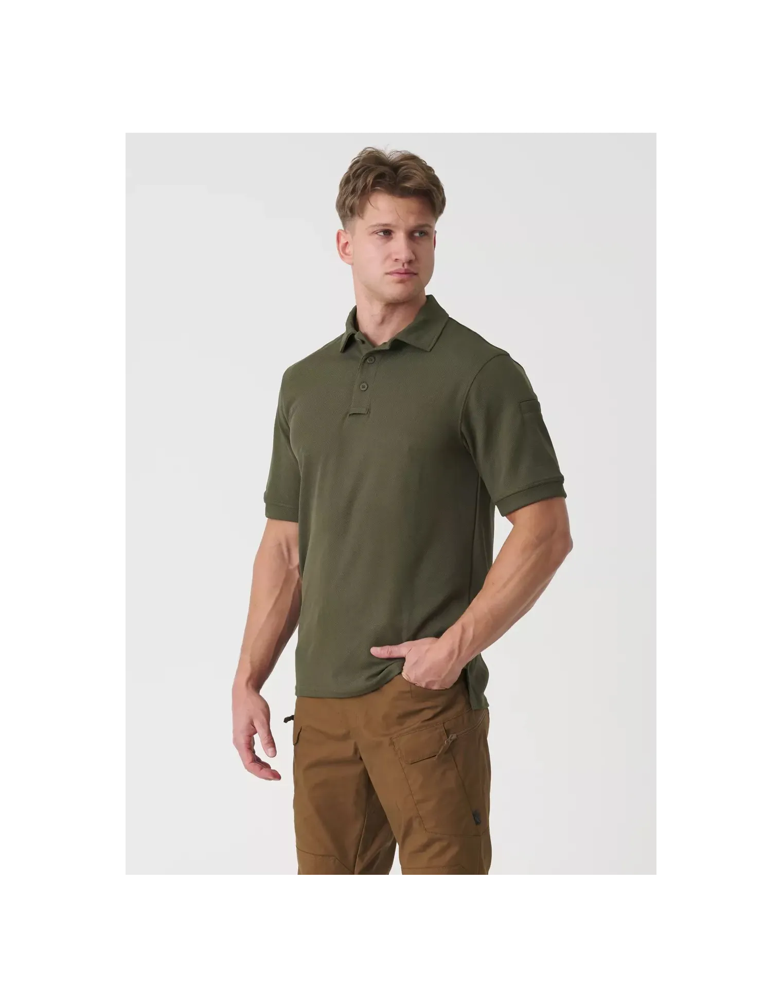 El polo militar UTL (Urban Tactical Line) tiene un corte simple y clásico y está hecho de prendas de punto innovadoras, que consisten en poliéster termoactivo terminado con la tecnología TopCool. Este sistema garantiza una alta transpirabilidad y ayuda a absorber la humedad: el polo militar permanece seco incluso durante actividades intensas. El panel de botones termina con un práctico lazo para gafas, y hay un bolsillo abotonado en el hombro izquierdo. La ventaja del polo táctico es su versatilidad en todas las condiciones climáticas. La prenda es apreciada no solo por los trabajadores de servicio uniformados, sino también por los tiradores y atletas.