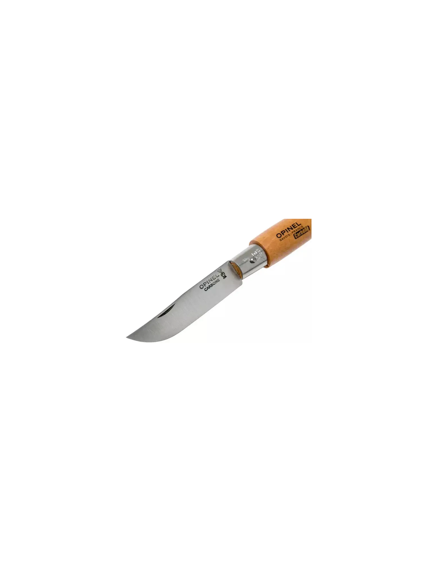 El acero al carbono Opinel es un acero no aleado, con un alto contenido de carbono que permite obtener después de la operación de tratamiento térmico la excelente dureza que garantiza una perfecta sujeción del filo, así como una gran resistencia al desgaste y un fácil afilado. Sin embargo, como el acero al carbono tiene una baja resistencia a la corrosión por humedad, requiere precauciones de uso: no deje su cuchillo en un ambiente húmedo, especialmente en el lavavajillas, limpie la cuchilla con un paño graso después de su uso y engrase a menudo junto con su articulación.