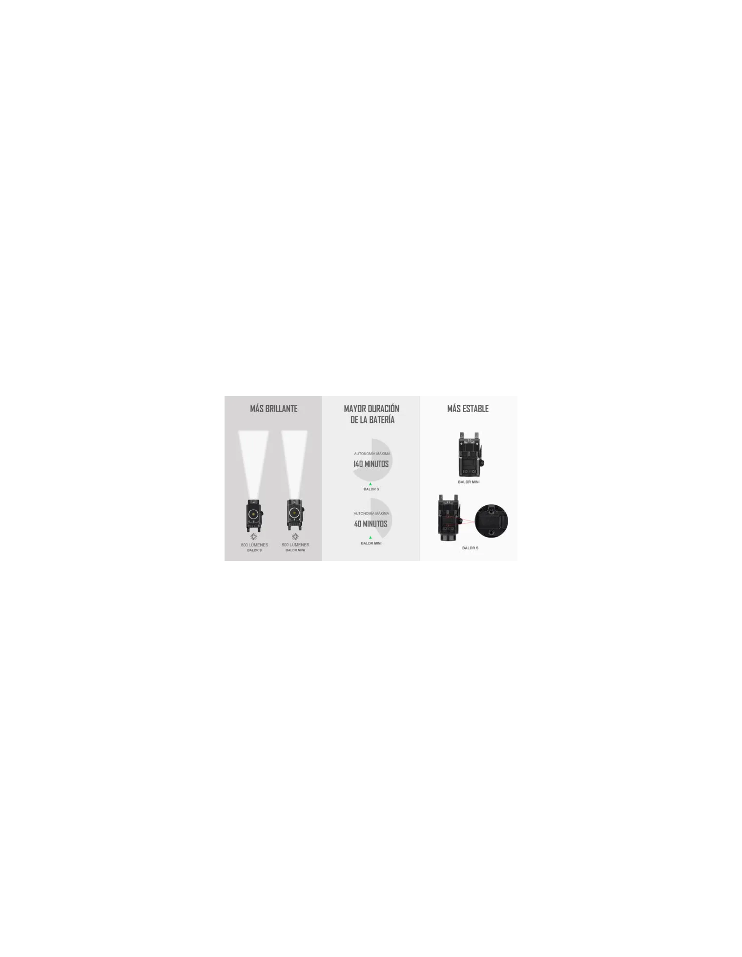 Nivel 2 / Potencia: 100 lúmenes / Duración: Luz blanca + puntero verde: 90 minutos Luz blanca: 140 minutos.