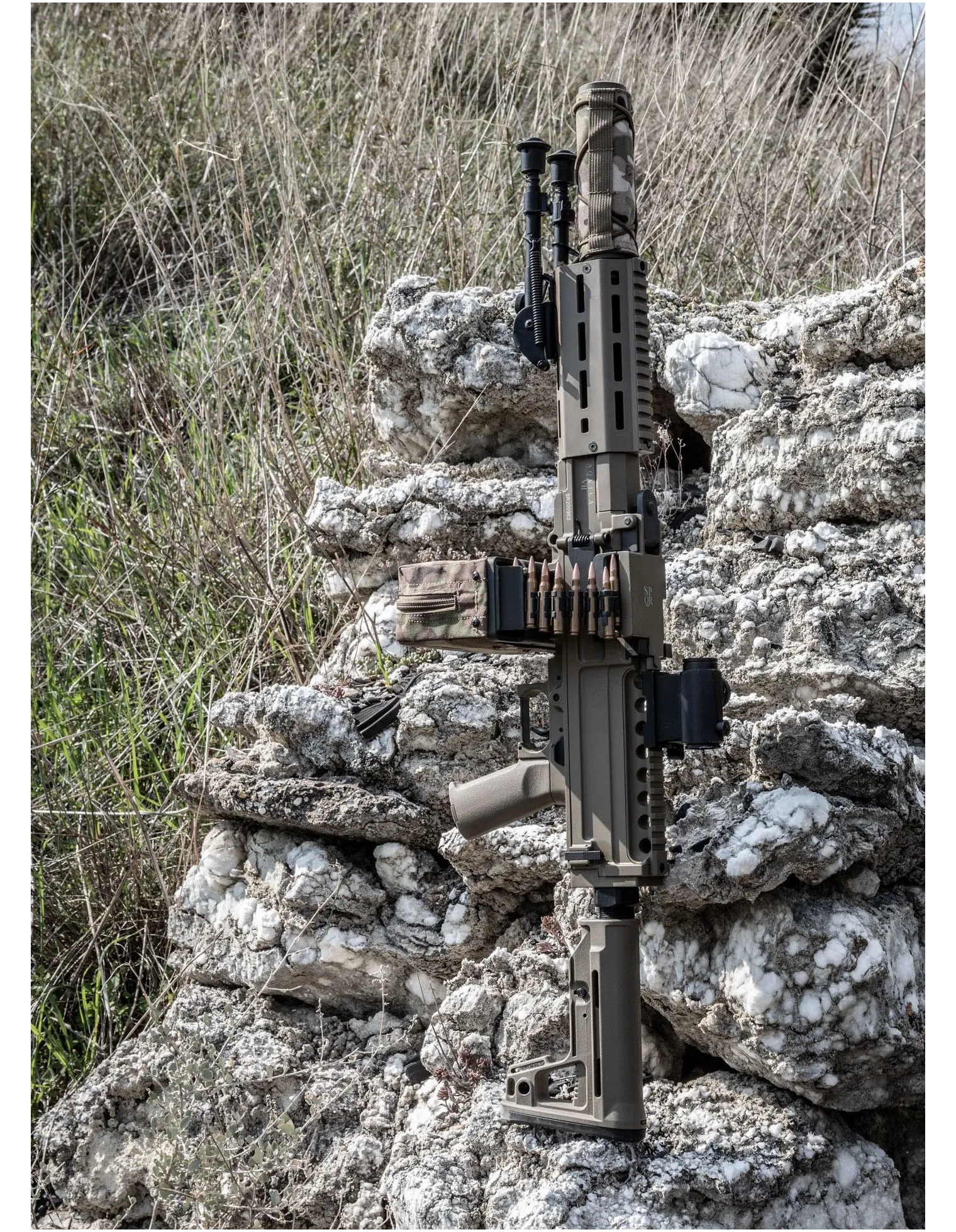 - Pistol grip con ergonomía más recta, para mejor posición del tirador.
