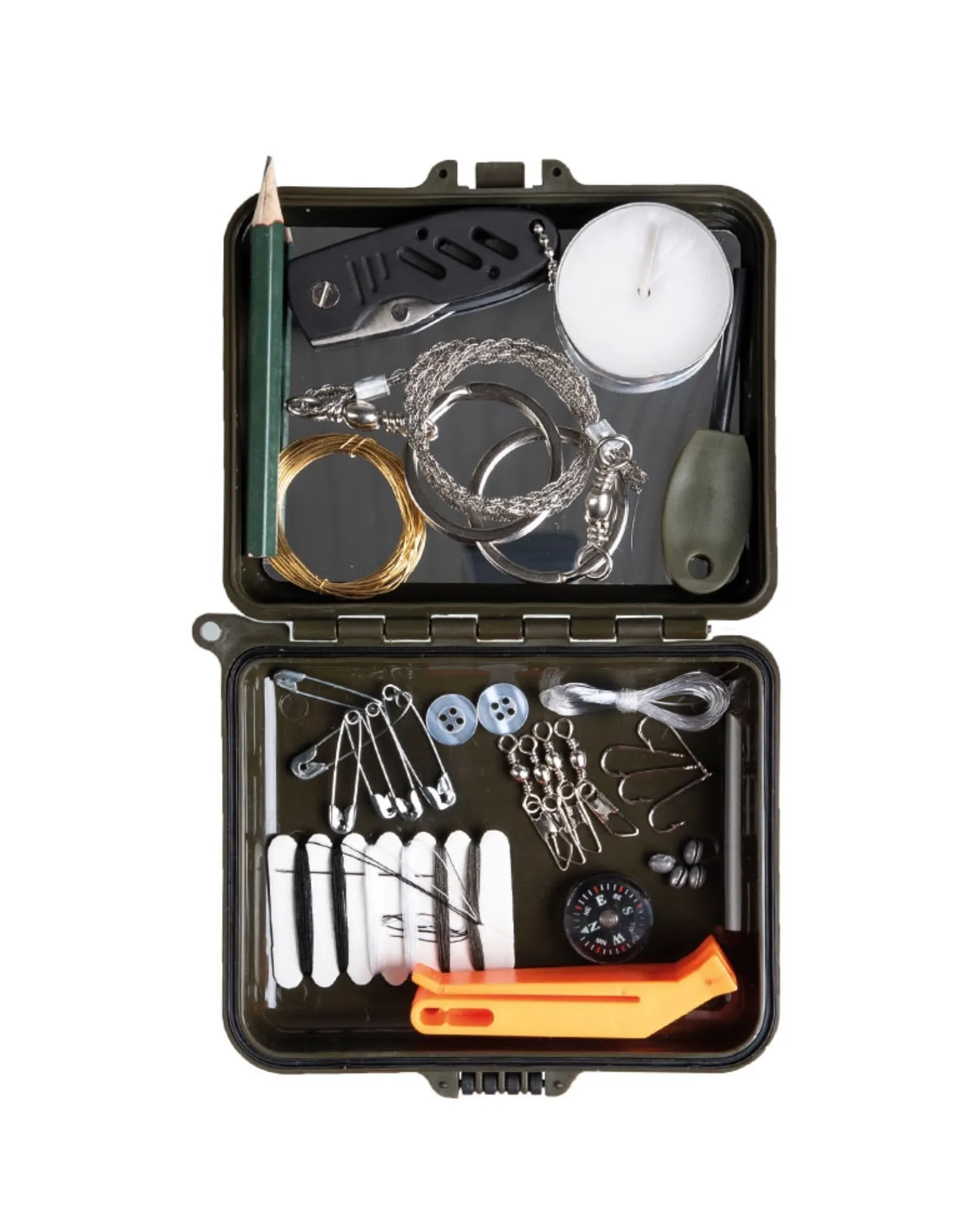 El SURVIVAL KIT MILTEC es un completo kit de supervivencia pensado para excursionistas, campistas y cualquier persona que desee estar preparada ante imprevistos. Reúne los elementos esenciales para desenvolverse en la naturaleza y viene protegido en una caja robusta y compacta, fácil de transportar en cualquier mochila. Con este kit tendrás a mano lo necesario para afrontar múltiples emergencias.