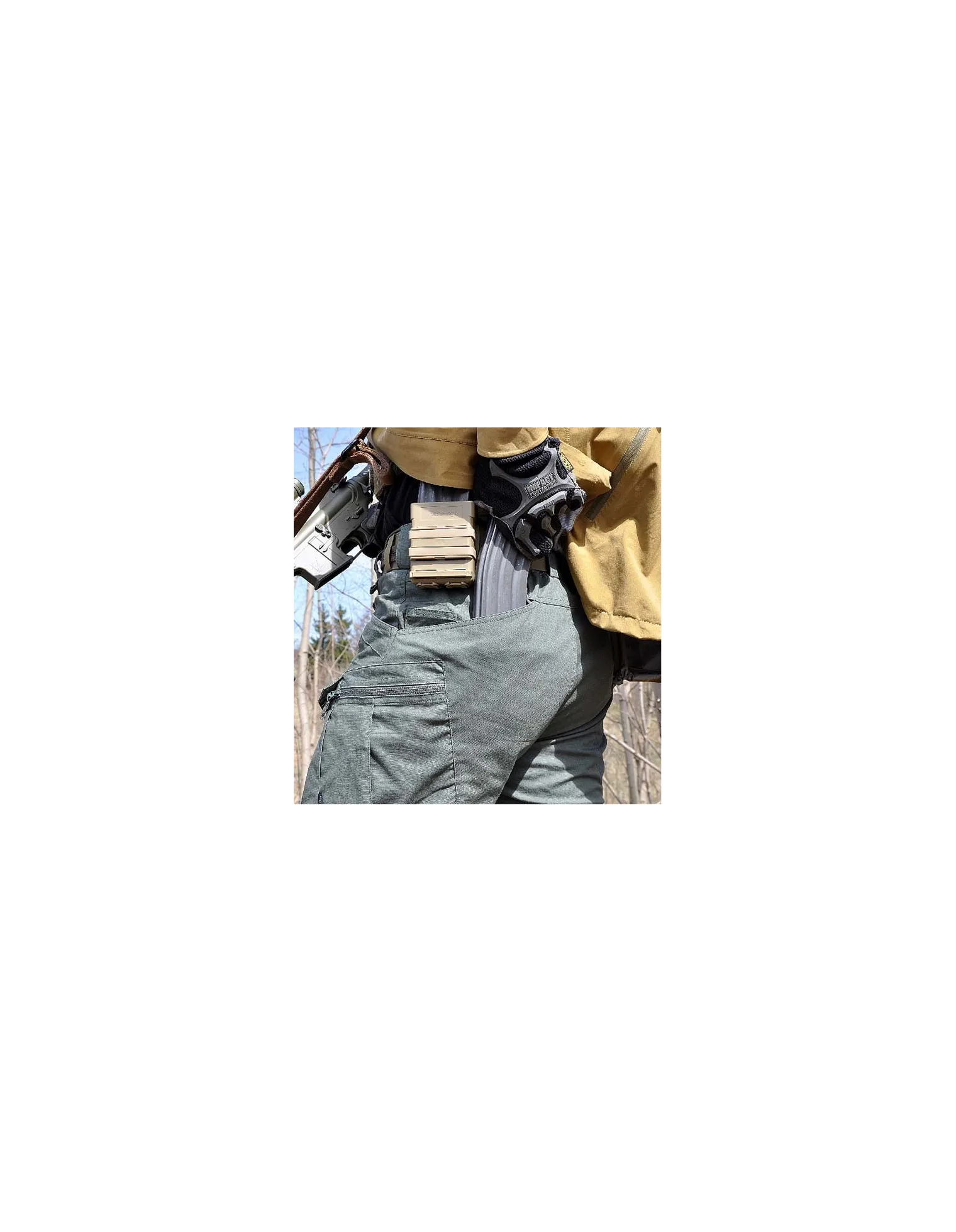 - Dos amplios bolsillos traseros con fácil acceso. Adaptado para el uso de volcado de cargadores