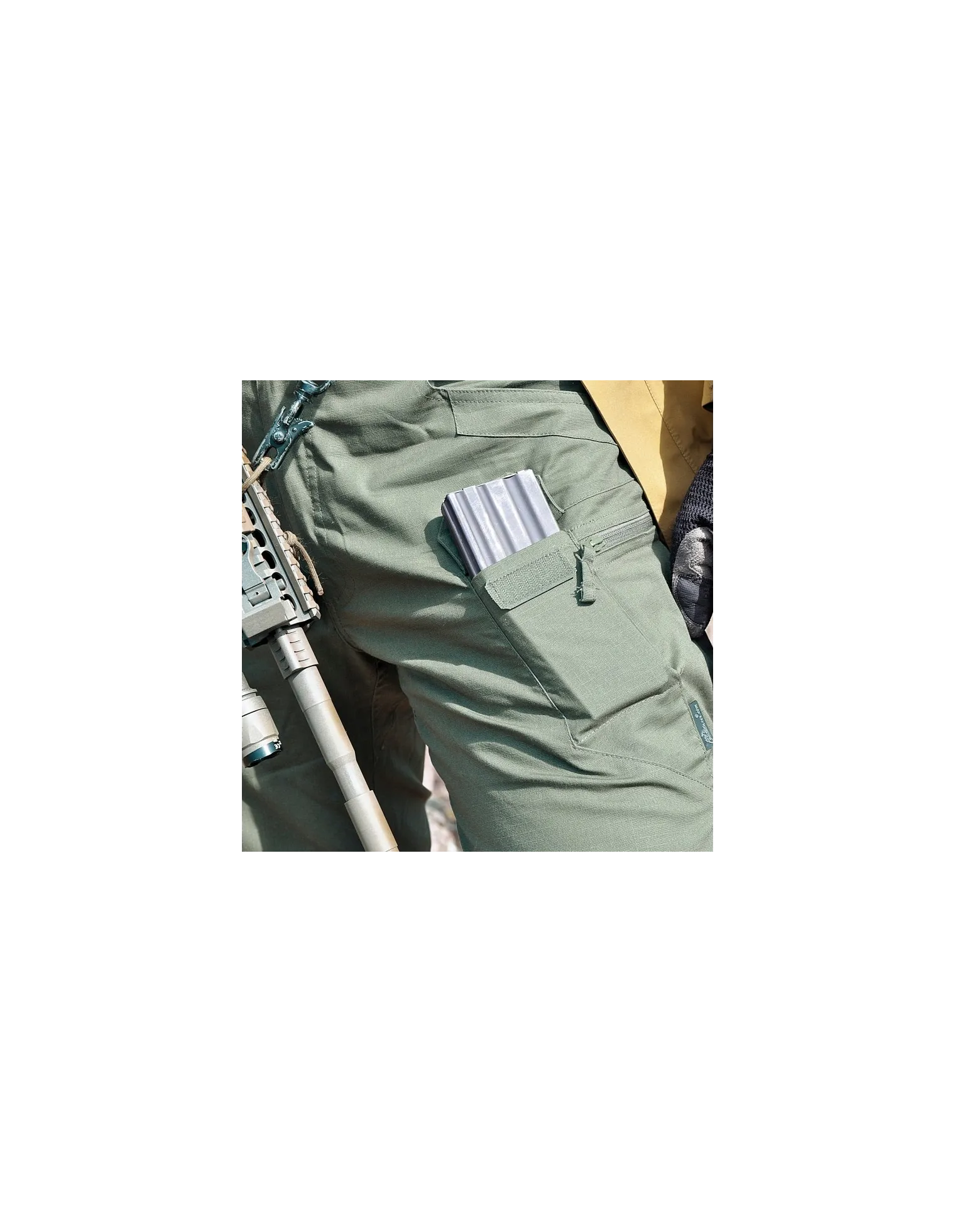 - Dos bolsillos de carga en los muslos con cremallera con cremallera reversa YKK® para llevar documentos y pequeñas pertenencias personales
