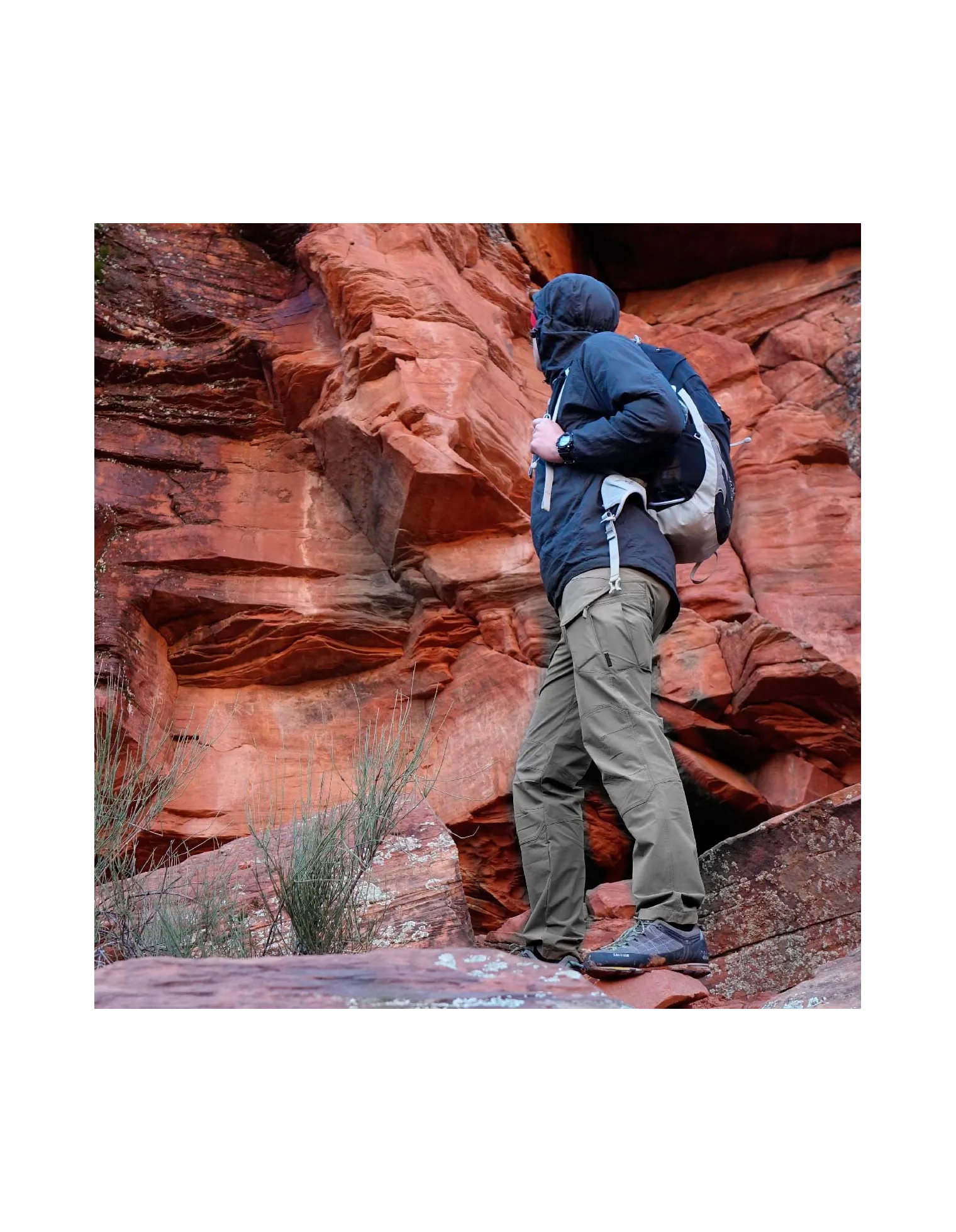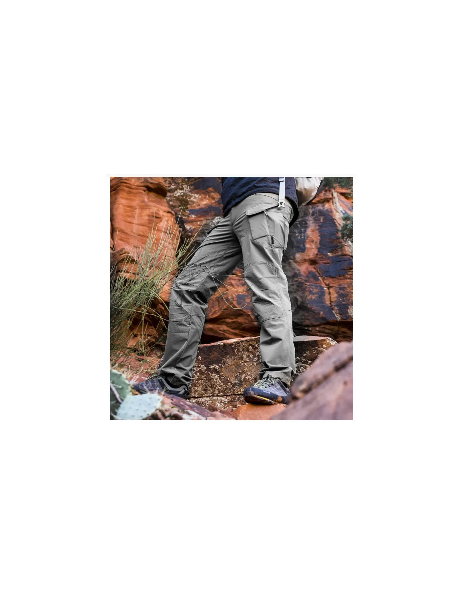 - Dos bolsillos de carga en los muslos con cremallera con cremallera reversa YKK® para llevar documentos y pequeñas pertenencias personales