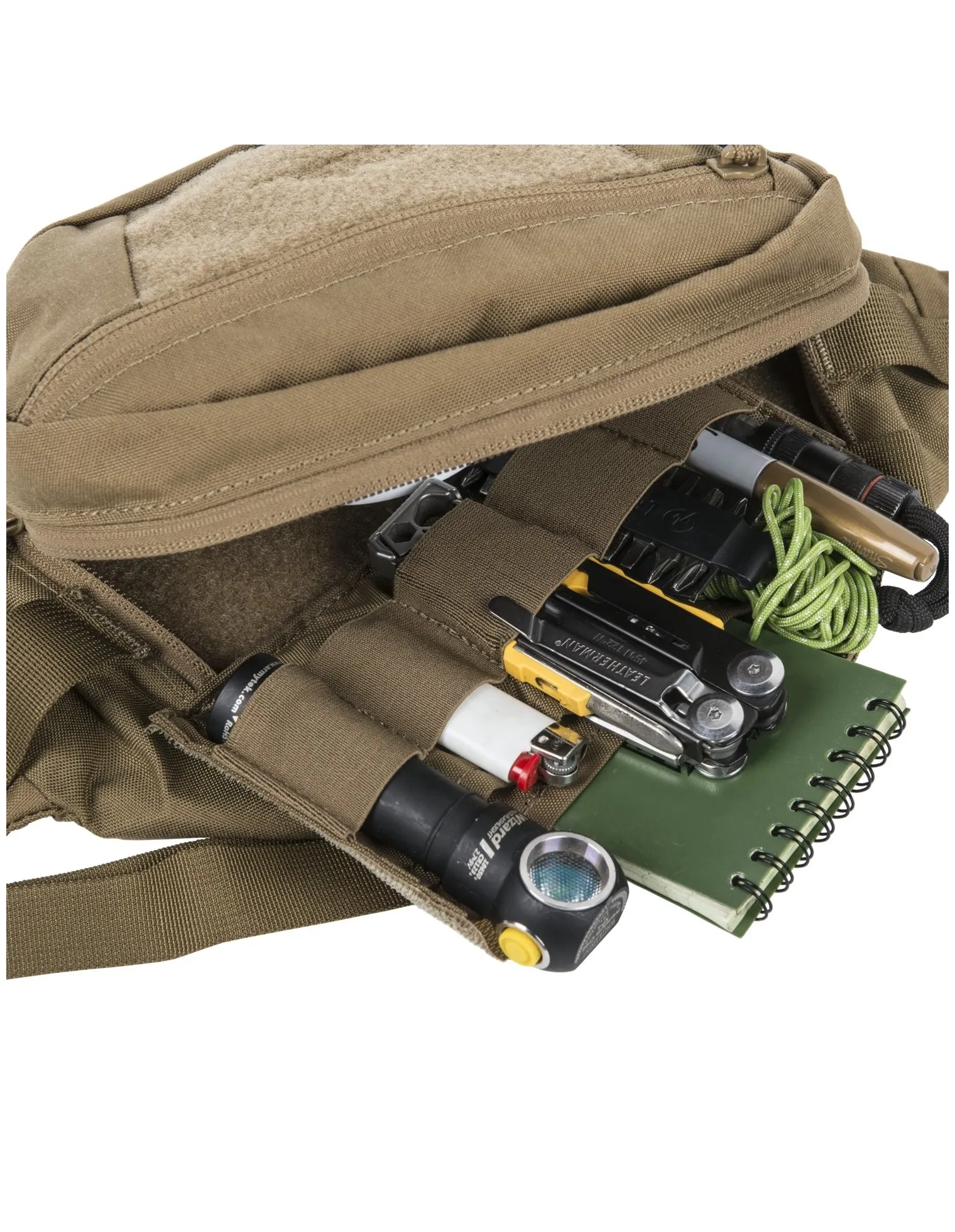 La riñonera Bandicoot® de tamaño mediano ofrece una serie de características únicas y de bajo perfil. Contendrá todos los elementos esenciales para llevar todos los días, como billetera, teléfono inteligente, botiquín de primeros auxilios, bocadillos, guantes, etc. La espaciosa cámara principal, además de un bolsillo de malla con cremallera, tiene un organizador desmontable con tres bolsillos planos y cinco bandas elástica. Dos bolsillos exteriores con cremallera (uno de ellos un bolsillo invisible, colocado en el lado interior de la mochila) permiten distribuir uniformemente la carga. La cremallera bidireccional permite un fácil acceso a la cámara principal desde cualquier lado. El cinturón de cadera ajustable se puede usar como bandolera en el pecho, si el usuario elige esconderlo debajo de una chaqueta. El cinturón de cadera también se puede quitar por completo, si es necesario. Varias bandas elásticas permiten que el paquete se integre rápidamente en cualquier sistema MOLLE / PALS. El panel de identificación con velcro colocado en el bolsillo exterior se puede utilizar para una fácil personalización.