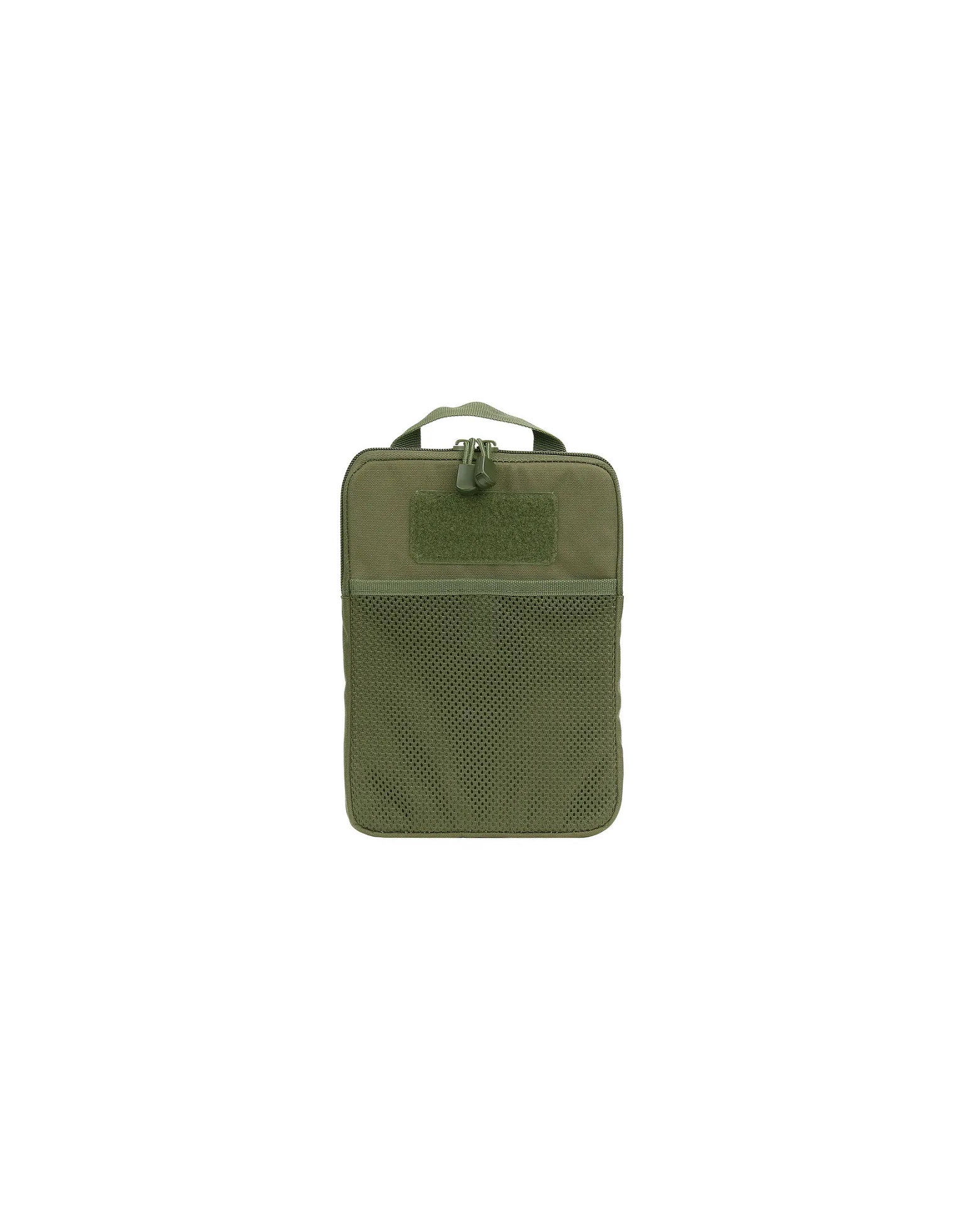 Con sistema MOLLE. en la parte frontal tiene un compartimeto que se cierra con velcro.