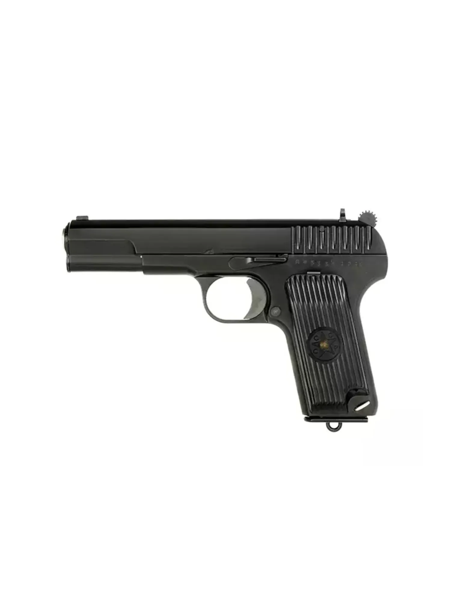 Una réplica realista a escala 1:1 de la legendaria pistola rusa Tokarev fabricada por la empresa taiwanesa WE-TECH. Un verdadero placer para coleccionistas y recreadores históricos, p. Unidades de la Segunda Guerra Mundial. Sólida construcción totalmente metálica con un funcional sistema de retroceso que aumenta aún más el realismo. Armazón, punto de mira, corredera, tope de corredera, canón, punto de mira, seguro, percutor, pestillo del cargador y cargador todo de metal. Solo los paneles de agarre estaban hechos de plástico.