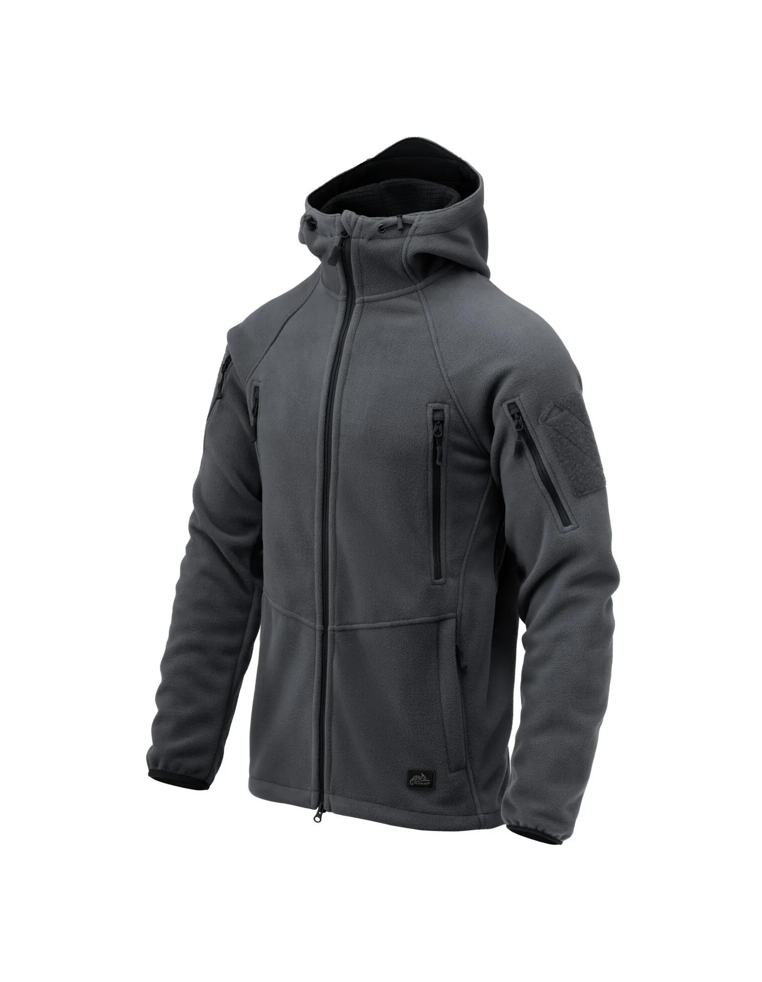 El material de vellón híbrido tiene dos capas diferentes. Por fuera, se parece a un vellón clásico, pero por dentro, es un vellón de rejilla, conocido por Alpha Hoodie y Alpha Tactical Jackets. Es un material con una estructura de verificación fina característica de piezas cuadradas más gruesas y elevadas y espacios más delgados en el medio. Esto hace que el Patriot Mk2 sea más ligero y transpirable, a la vez que te mantiene caliente. Las rejillas de ventilación con cremallera debajo de los brazos ayudan con la termorregulación.