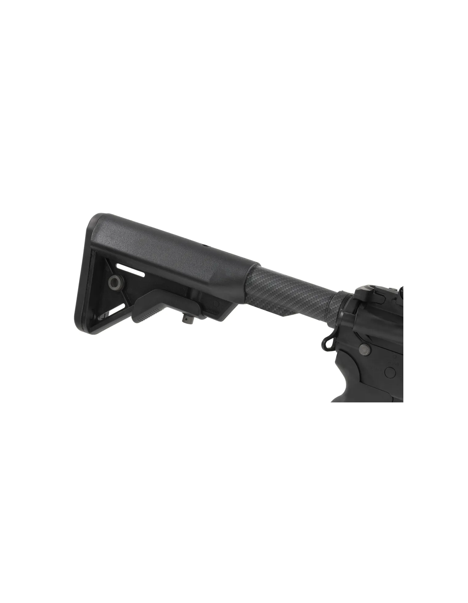 La réplica cuenta con un cuerpo de polímero reforzado que reduce el peso sin comprometer la resistencia, combinado con un guardamanos metálico con sistema M-LOK, que permite la instalación de accesorios como grips, linternas o láseres. En la parte superior incorpora un raíl Picatinny continuo, ideal para montar ópticas, miras de punto rojo o alzas abatibles.
