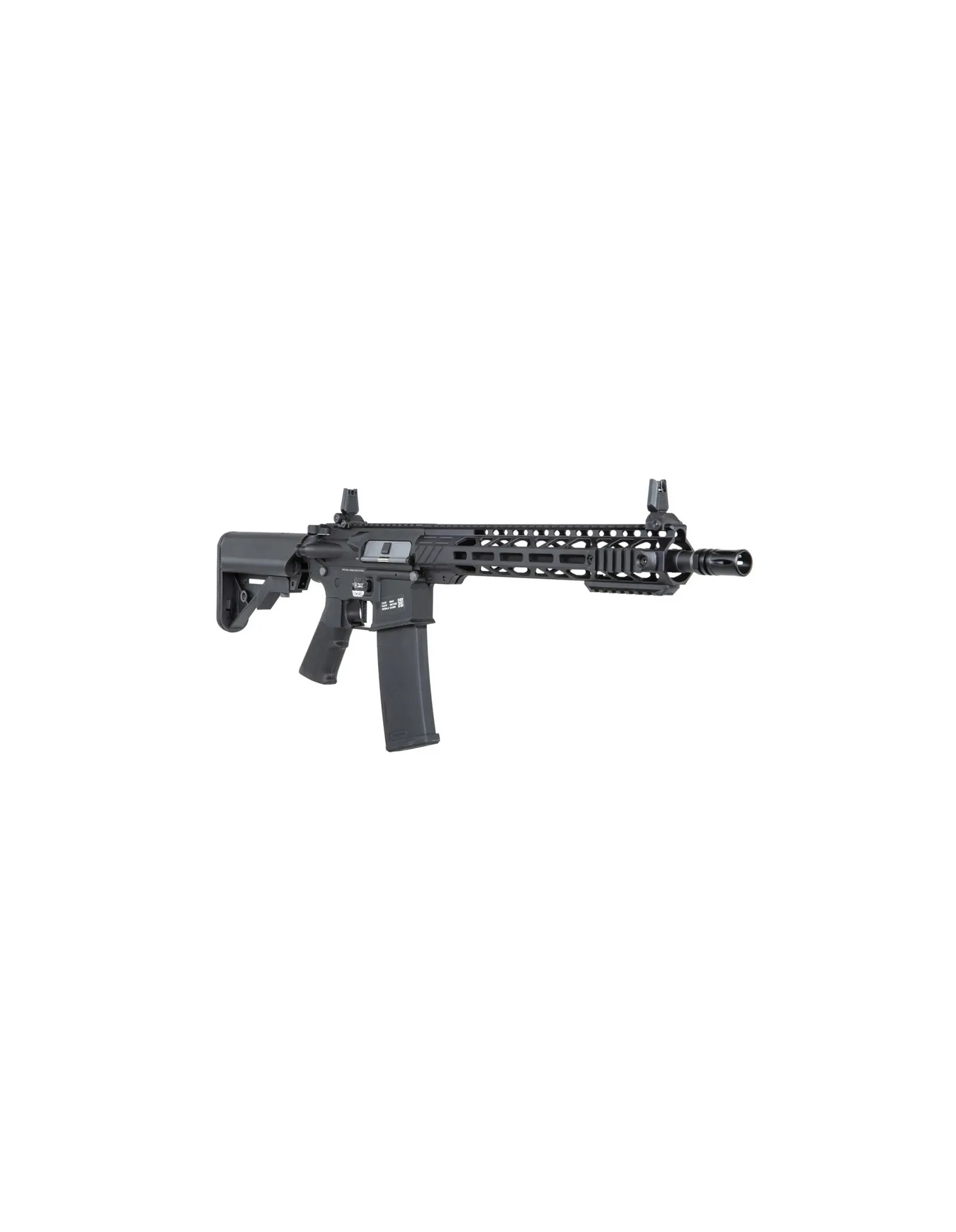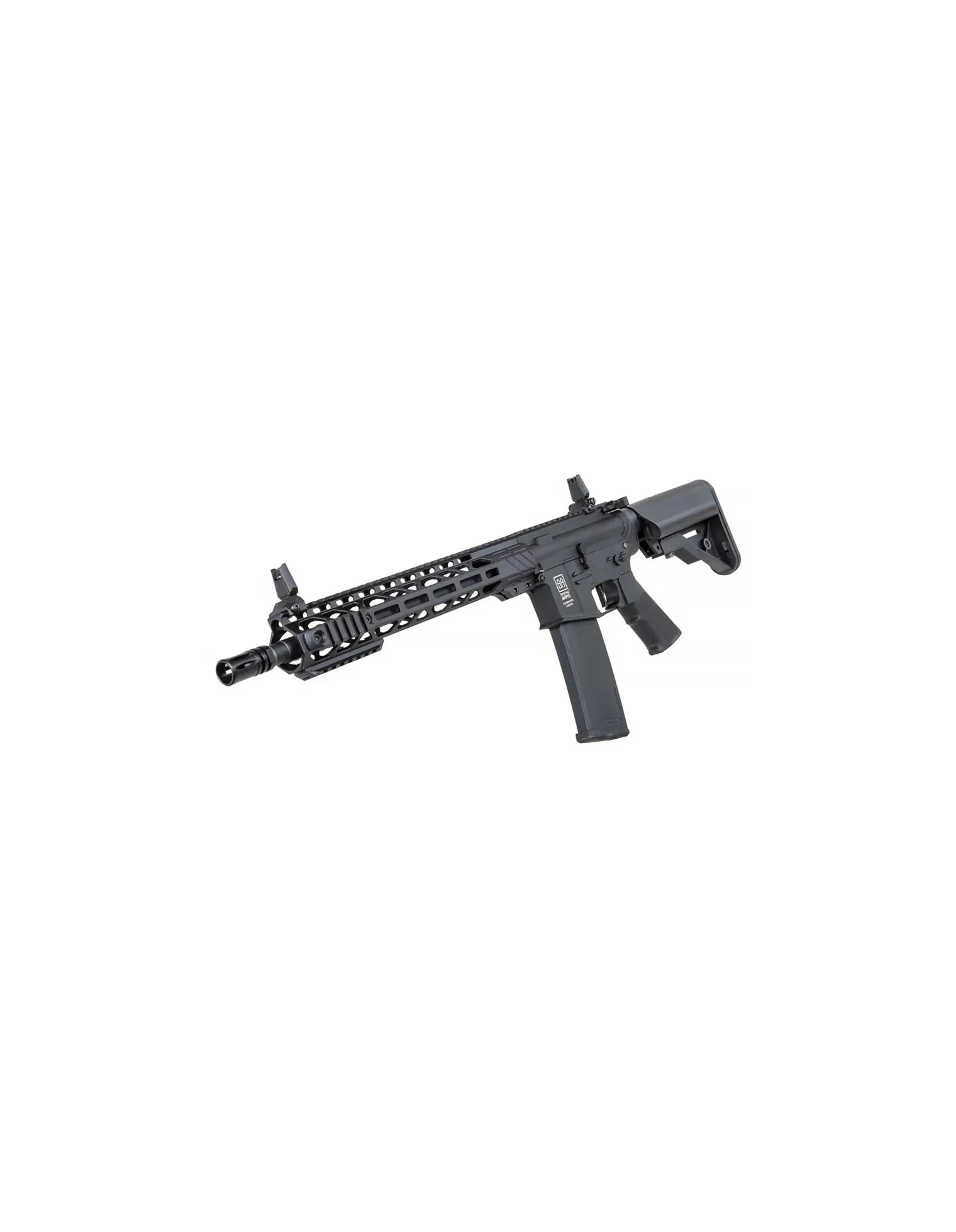 Réplica ligera y resistente fabricada en polímero reforzado con fibra de nylon y partes metálicas clave. Diseñada en colaboración con EMG Arms y equipada con licencias oficiales de Daniel Defense®.